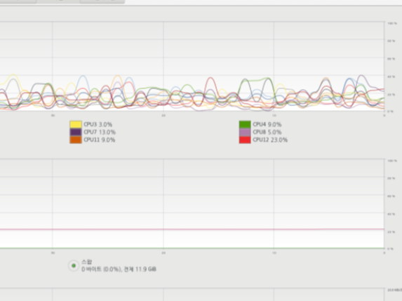 또한 GIL에 의해서 한번에 하나의 코어의 사용량만 증가 감소해야할 텐데 동시에 여러 CPU가 약간씩 사용되는 것도 살펴보자.