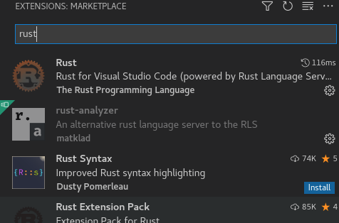 리눅스 설치지 과정이지만 윈도우 설치에 대한 내용도 같이 있습니다. 러스트의 설치는 간단하다. 공식문서 참고 $ curl --proto '=https' --tlsv1.2 -sSf https://sh.rustup.rs | sh $ source ~/.cargo/env 설치를 마친 후 설치 확인 $ rustc --version rustc 1.60.0 (7737e0b5c 2022-04-04) 문서를 보면 일부 러스트 패키지가 C코드에 의존적이기 때문에 링커를 실행할 수 없다는 에러가 발생할 수 있다고 한다. 따라서 C컴파일 환경을 구성하는 것이 좋다. 이 부분은 windows 사용자와 linux 사용자의 구성방법이 다를 수 있다. C 개발환경 설치 windows 사용자 https://visualstudio.mi..